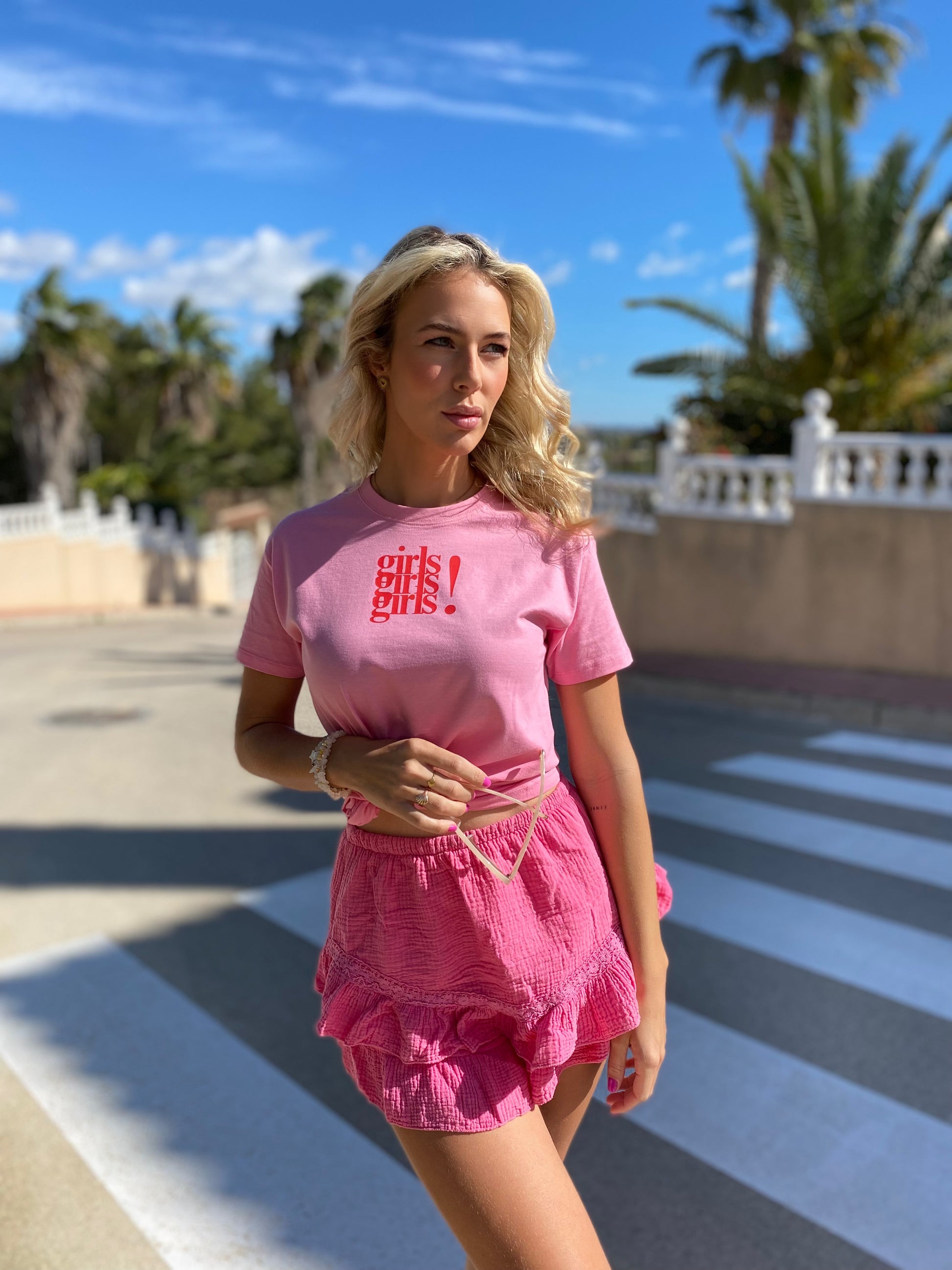 The model is 177 cm and wears size S. The items naturally have a loose fit, so if you are unsure between 2 sizes, you can go for the smallest for a more fitted effect or your own size for a loose fit look. What is also great for the summer is to choose the T-shirt extra large and combine it with shorts underneath for the perfect festival look.
