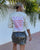 Het model is 177 cm en draagt maat S. De items vallen van zichzelf loose fit dus als je twijfelt tussen 2 maten kun je voor de kleinste gaan voor een meer aangesloten effect of je eigen maat voor een loose fit lookje. Wat ook super leuk is voor de zomer is het T-shirt extra groot te kiezen en te combineren met een shortje eronder voor de perfecte festival look.