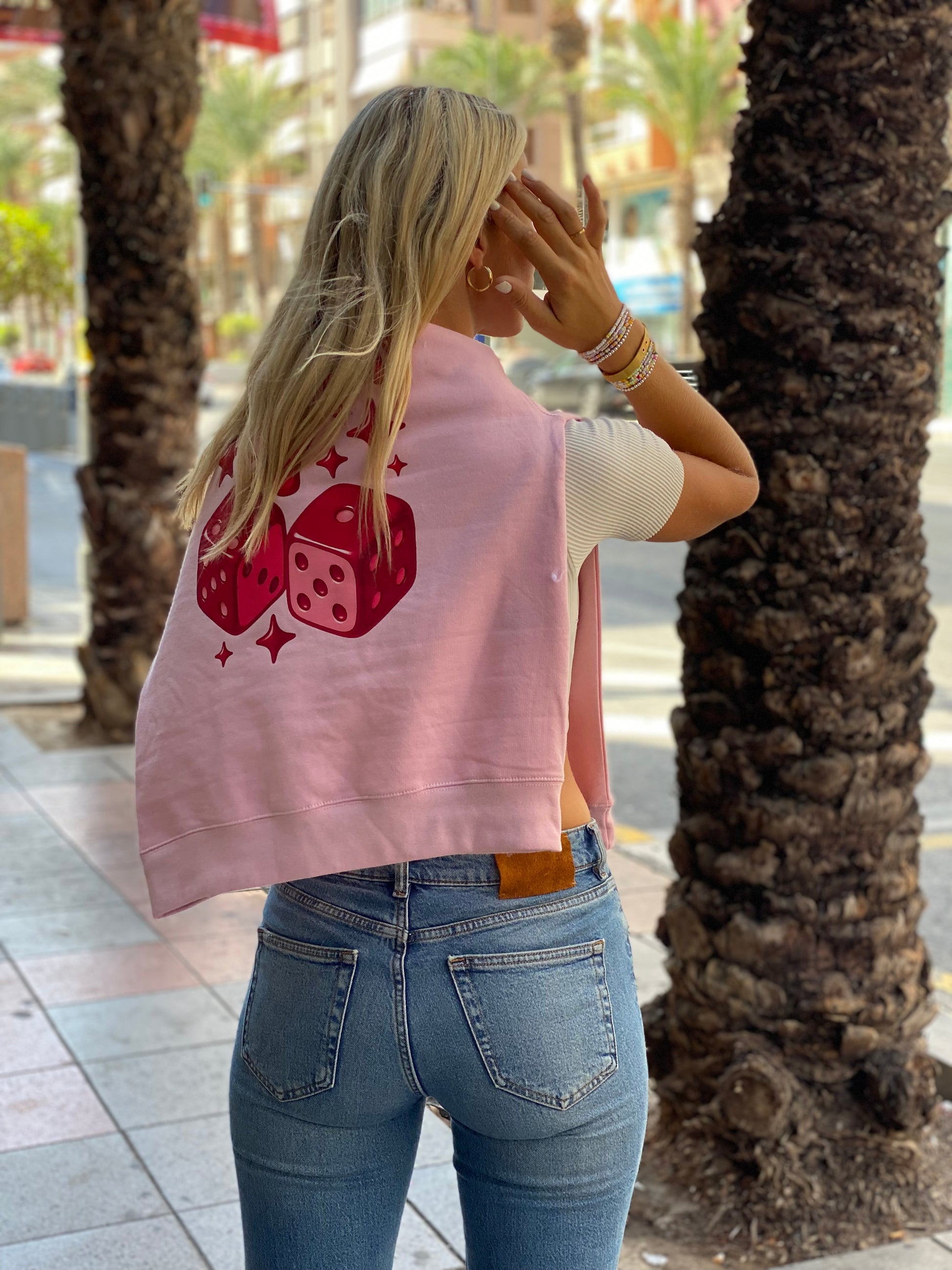 Today is your day! Met de It’s Your Lucky Day sweater maak je van elke dag een winnende dag. De vrolijke roze kleur en bordeaux print geven jouw outfit instant good vibes.