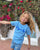 Het Fleek signature T-shirt in de versie voor je mini-me. De kleur lichtblauw gecombineerd met het cobalt blauw is wat ons betreft een top combi!