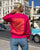 Het model is 177 cm en draagt maat S. De items vallen van zichzelf loose fit dus als je twijfelt tussen 2 maten kun je voor de kleinste gaan voor een meer aangesloten effect of je eigen maat voor een loose fit lookje. Wat ook super leuk is voor de zomer is het T-shirt extra groot te kiezen en te combineren met een shortje eronder voor de perfecte festival look.